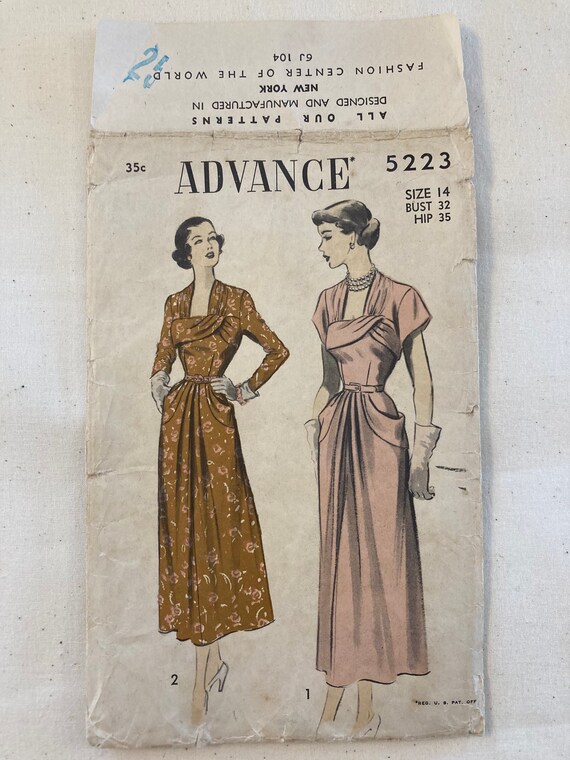 Advance 5223 1940s Evening Dress Size 14 Bust 32 Vintage Etsy